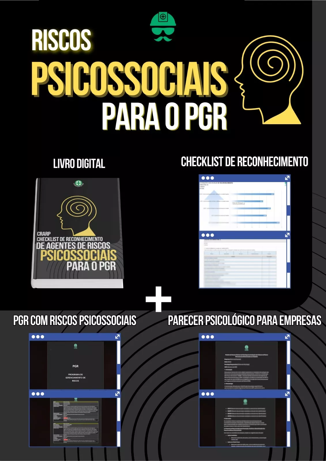 Com modelo de PGR pronto, checklist, parecer técnico e muito mais, você terá tudo o que precisa para estar 100% alinhado às exigências da NR-01 e à avaliação dos riscos psicossociais!